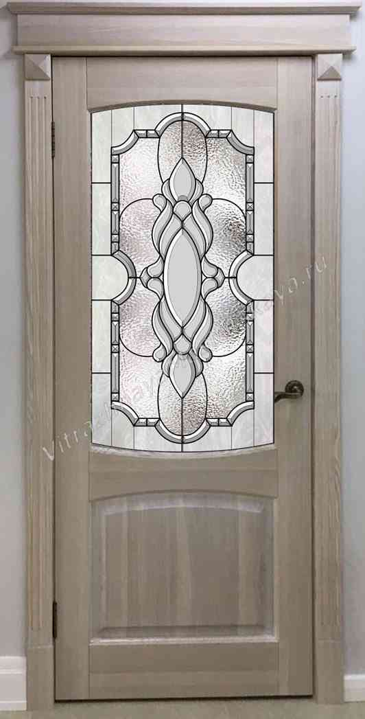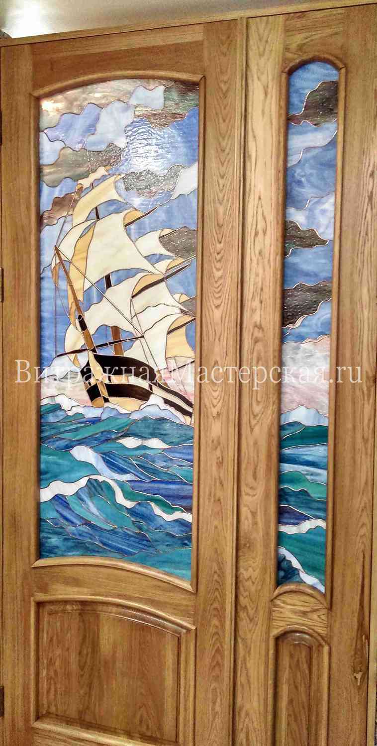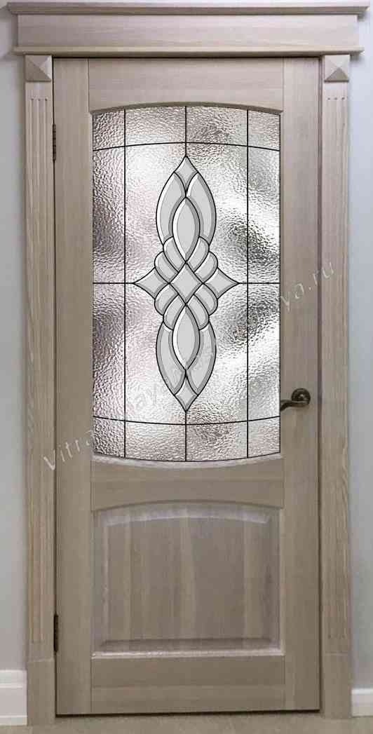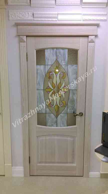 Витраж установлен в дверь из массива дерева